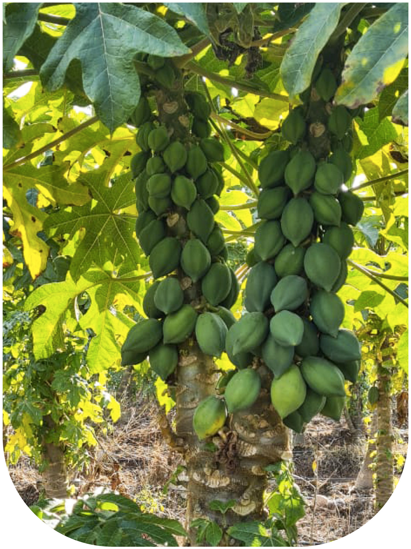 El papayo es originario de Centroamérica y pertenece a la familia de las Caricaceae. Existen más de 40 especies de papayas, pero las más conocidas por sus frutos son solamente: C.papaya, C.pubescens (cultivada en Chile) y C.pentágona o Babaco. La producción de papaya se concentra en la IV Región de nuestro país en la zona costera y el fruto se caracteriza por ser muy dulce y aromático de color amarillo, tamaño pequeño y forma alargada, de piel delgada y muy rico en papaína (enzima proteolítica). Con respecto al proceso productivo en nuestra empresa, posterior a la cosecha, el producto es trasladado al packing donde sigue un proceso de selección de calidades y calibres, para lo cual, se cuenta con una moderna instalación especialmente diseñada para tal efecto.