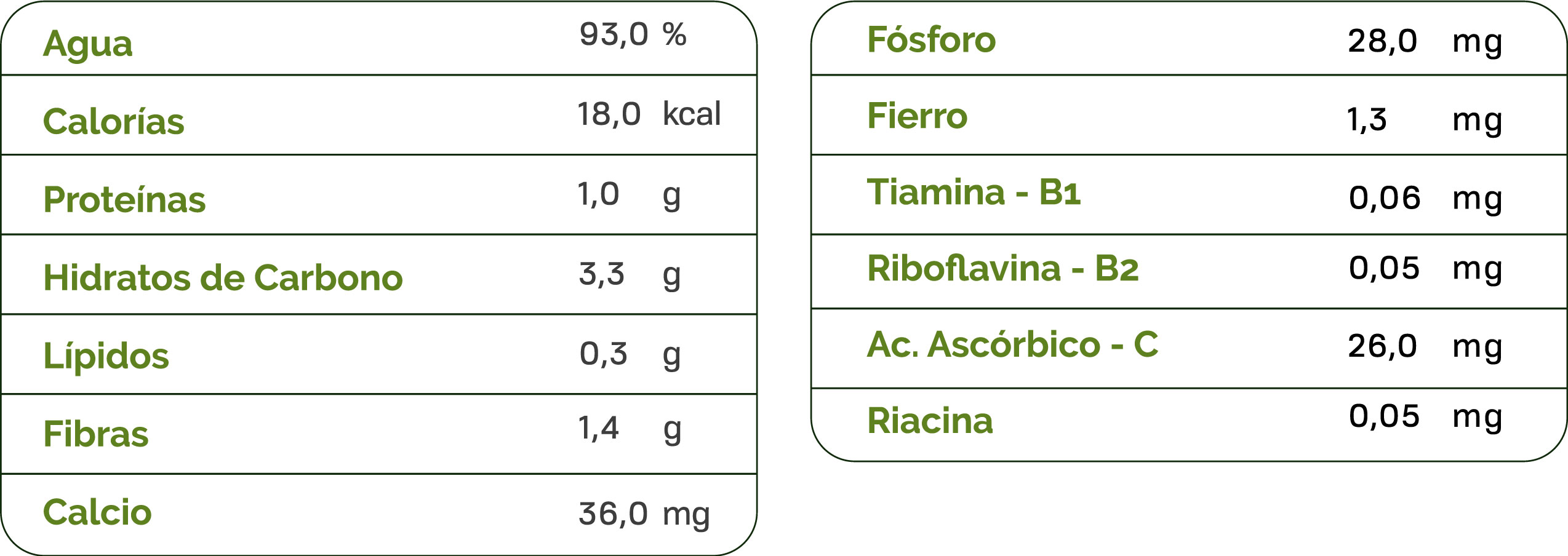 Nutrientes: Basado en 100 g. de parte comestible.